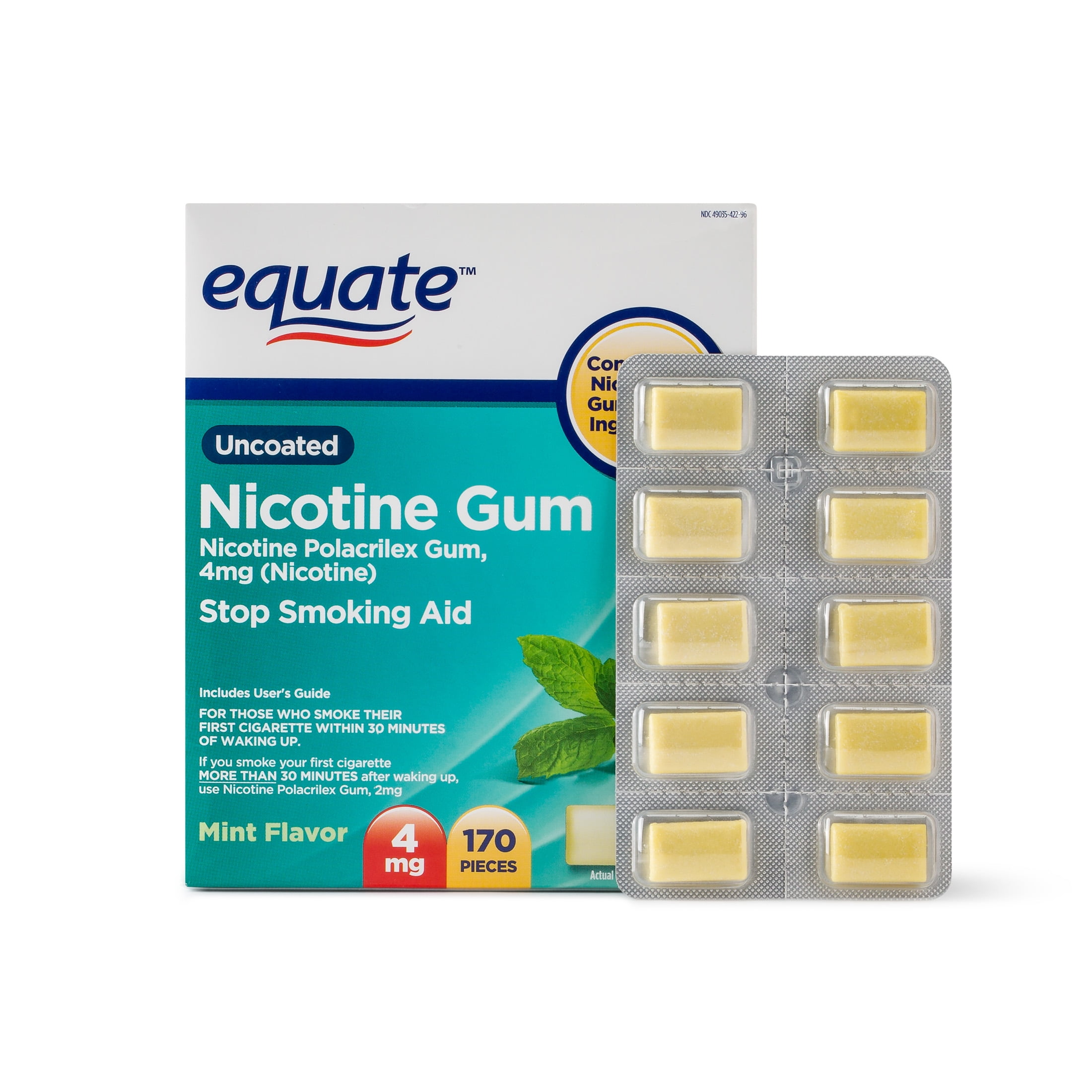 2 Pack Equate Uncoated Nicotine Gum Stop Smoking Aid Mint Flavor 4 Mg 170 Ct Walmart Com